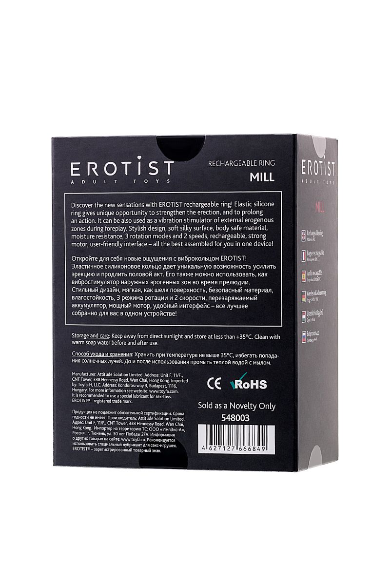 Откройте для себя новые ощущения с виброкольцом EROTIST! Эластичное силиконовое кольцо дает уникальную возможность усилить эрекцию, и продлить половой акт. Его также можно использовать, как вибростимулятор наружных эрогенных зон во время прелюдии. Стильный дизайн, мягкая как шелк поверхность, безопасный материал, влагостойкость, 3 режима ротации и 2 скорости, перезаряжаемый аккумулятор, сильный мотор, удобный интерфейс - все лучшее собрано для вас в одном устройстве!