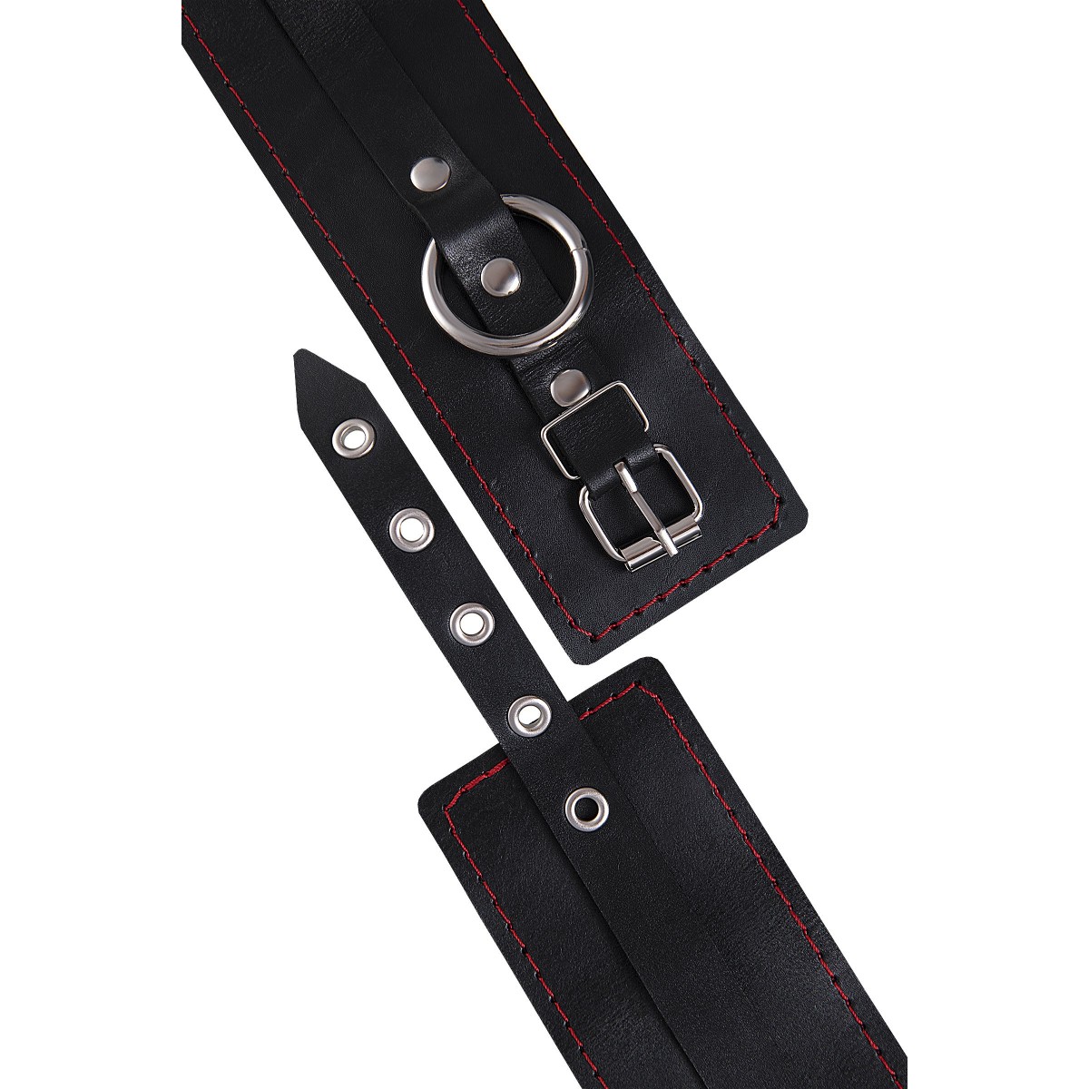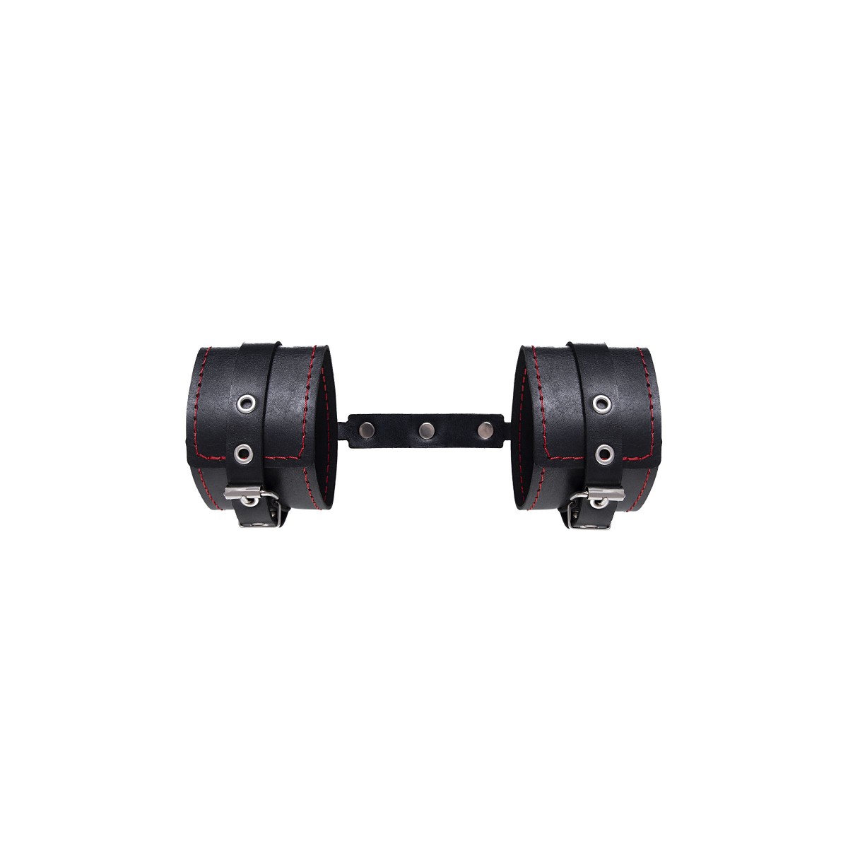 Эти однослойные кожаные оковы с контрастной строчкой красного цвета могут стать стильным аксессуаром, а могут послужить вашим целям по своему прямому назначению. Частичное обездвиживание и невозможность двигать руками или ногами дают вам полную власть над партнером – взрослые игры для взрослых. Наличие двух колец и карабинов, соединенных между собой кожаным ремешком, позволяет использовать изделие как раздельно – аксессуар-манжеты, так и как оковы для фиксации. К широким металлическим кольцам также можно присоединить и другие аксессуары при помощи карабинов. Благодаря универсальному размеру оковы могут использоваться и мужчинами, и женщинами. Размер легко регулируется с помощью металлических пряжек, органично вписывающихся в общий стиль. Длина манжет - 25 см, ширина - 6,5 см. Длина сцепки - 17 см.