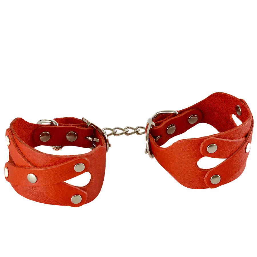 Красные наручники «Цезарь». Наручники изготовлены из натуральной кожи. Длина манжет - 25 см, ширина - 4 см.